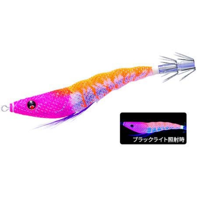 イージー!ラクラク!イカキャッチ! ボディ波動とフワフワフットで抱かせる実績No.1! フローティングエビ型スッテ! ●ローリングシャフト…スムーズな回転でラインよれを防ぎ、潮流や波をうけて自然な揺らめきを演出。誰にでも簡単な釣り方で釣れるアクションを引き出せます。 ●フワフワフット…リアルな鳥毛はまるでエビの足の様に潮流にのって揺らめき誘います。 ●ウェーブモーションボディ…従来のエギ形状では出せない凸凹ボディが強い波動を発生。その波動でイカを誘うウェーブモーションボディ。 ●リアルでスリムなシュリンプフォルム…リアルなエビを再現する高バランスボディ。スリムなボディはフッキング抜群。 【カラー:25.KVVP(日中ピンク)】 紫外線発色ボディ。紫外線発光のケイムラボディにシルエットがハッキリでるパープルヘッド+ピンクの組み合わせはオールマイティに使えます。ライト点灯時の浅場でも効果あり。 【サイズ:95mm】 【重量:6g】※ご注文確定後の返品・交換不可のためご注意ください。