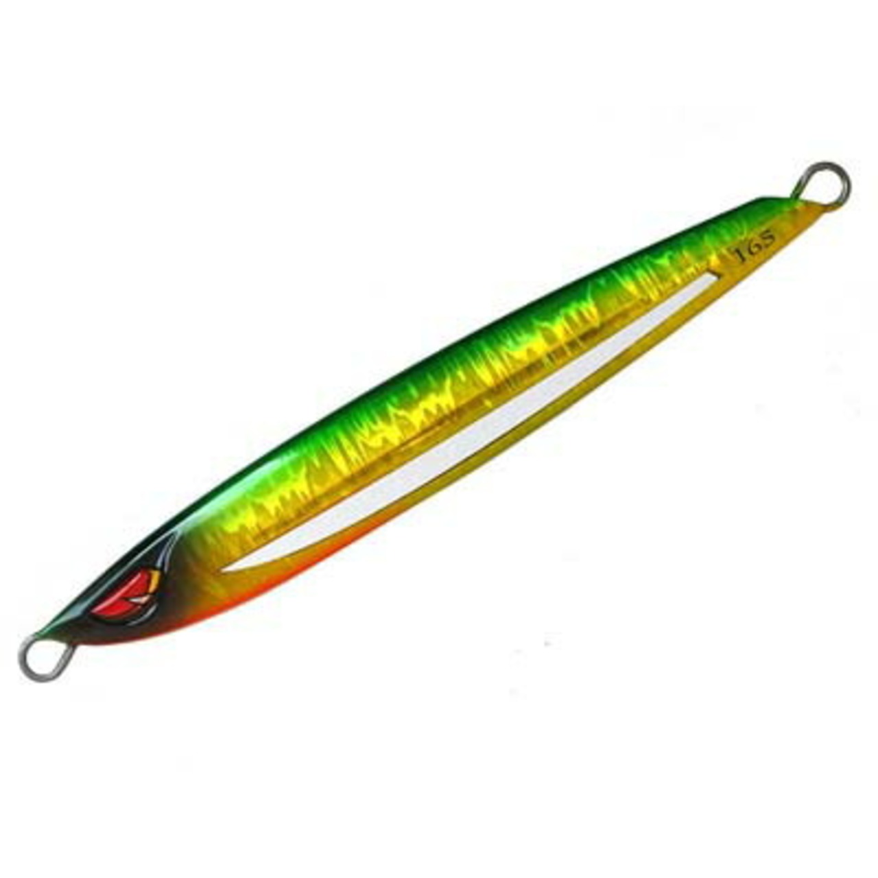 研ぎ澄まされた形状 = 日本古来の武器「 日本刀 」を イメージして 採用。高速巻き(追わせて)から → フォールを意識したジャーク=タメを作るピッチに変化を入れる事によりブリ・青物 の 本能を刺激し、スイッチを入れる。