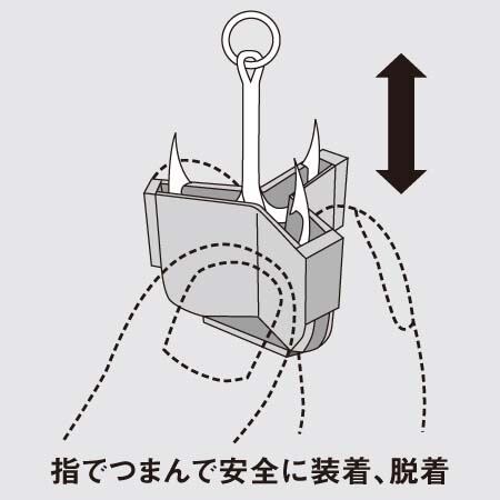 フックがサビにくい水ヌキ構造採用。ワンタッチ装着。