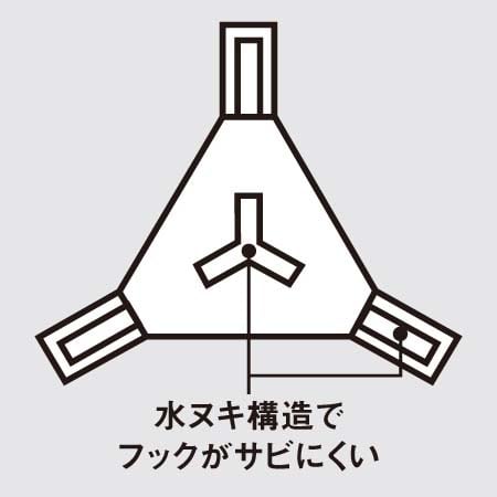 フックがサビにくい水ヌキ構造採用。ワンタッチ装着。