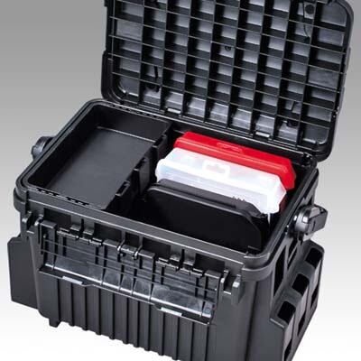 第4の“N”シリーズ「VS-7090N」。ハンドルストッパー機能を搭載し、持ち運びのストレスを解消したNシリーズに、新機能の「リフトアップシステム」を採用。これまでは、下段に収納しているタックルを取り出す際、中皿を取り外し、ボックスの外へどける必要があったが、リフトアップシステムを採用することで、常設のインナーケースを取り外さず、持ち上げるだけで、下段のタックルを取り出すことが可能になりました。時合を逃さず、スムーズな仕掛け交換ができ、限られたスペースでの釣りなどに最適です。