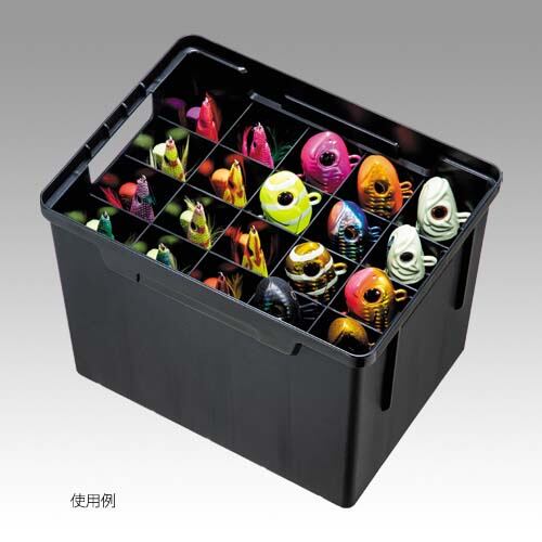 タチウオテンヤやタコエギの収納をメインに考えたサイズ設計。大きなマス目と深型設計を合わせることにより、たびたび収納に悩まされていたタチウオテンヤやタコエギの収納の活路を見出します。その他にもプラグやジグの収納などにも便利です。水抜き穴を設置しているので、使用後は丸洗いも可能です。