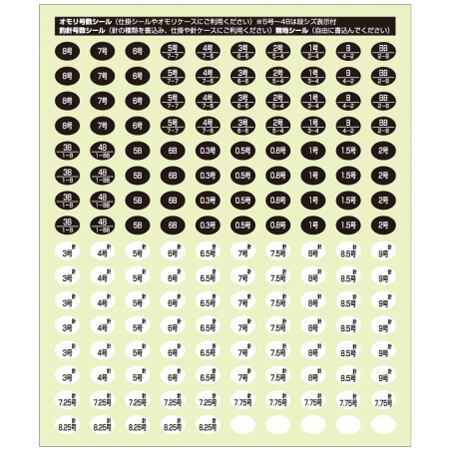 仕掛シールに号数シールを貼り使用したり、直接針ケース・オモリケース・スプールに貼って使用できる。
