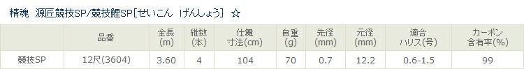 宇崎日新 精魂 源匠[せいこん げんしょう] 競技SP 12尺(3604) 淡水用ロッド
