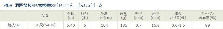 宇崎日新 精魂 源匠[せいこん げんしょう] 競技SP 18尺(5406) 淡水用ロッド