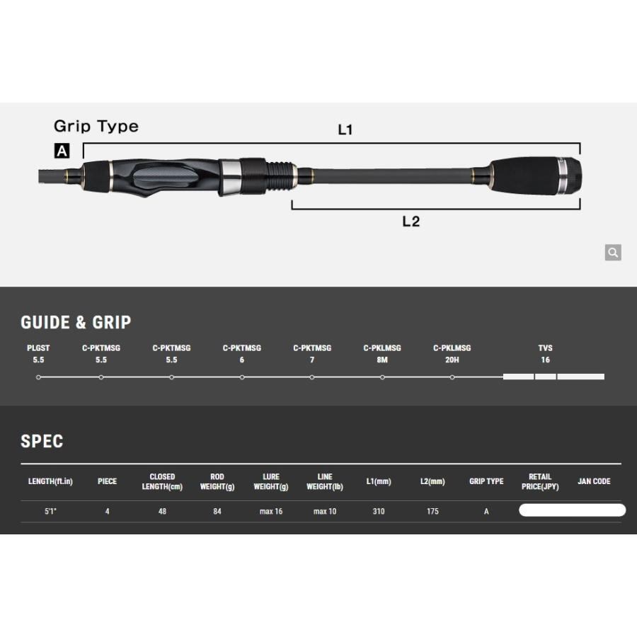 ・軽量なルアーをピンスポットへ届ける釣りに最適なショートレングスモデル。