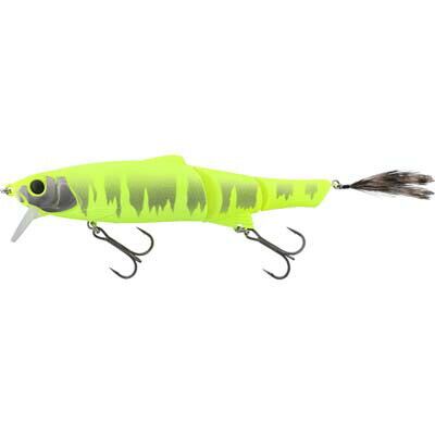 リアルな魚の艶めかしさを演出するため、腹部には内掘りを施しボディーに透明感と奥行きを強調させより立体的な仕上げになっています。またボディー後端部のフェザーにより、本物のベイトのようなナチュラルな泳ぎを表現しました。