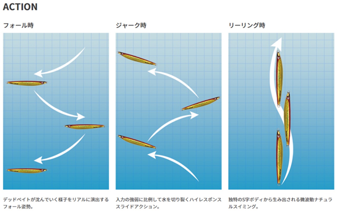 フォール時…デッドベイトが沈んでいく様子をリアルに演出するフォール姿勢。