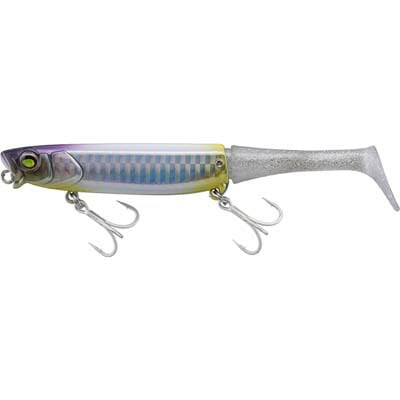 ボディはプラグ、テールはソフト素材のハイブリッドルアー。従来の、ヘッドが金属製のものでは底を引き摺ってしまうような状況でも、しっかりと浮き上がり、スローに誘うことが可能です。また、ボリュームのあるボディと柔らかい波動を発するテールの融合により、アピールと喰わせを両立します。