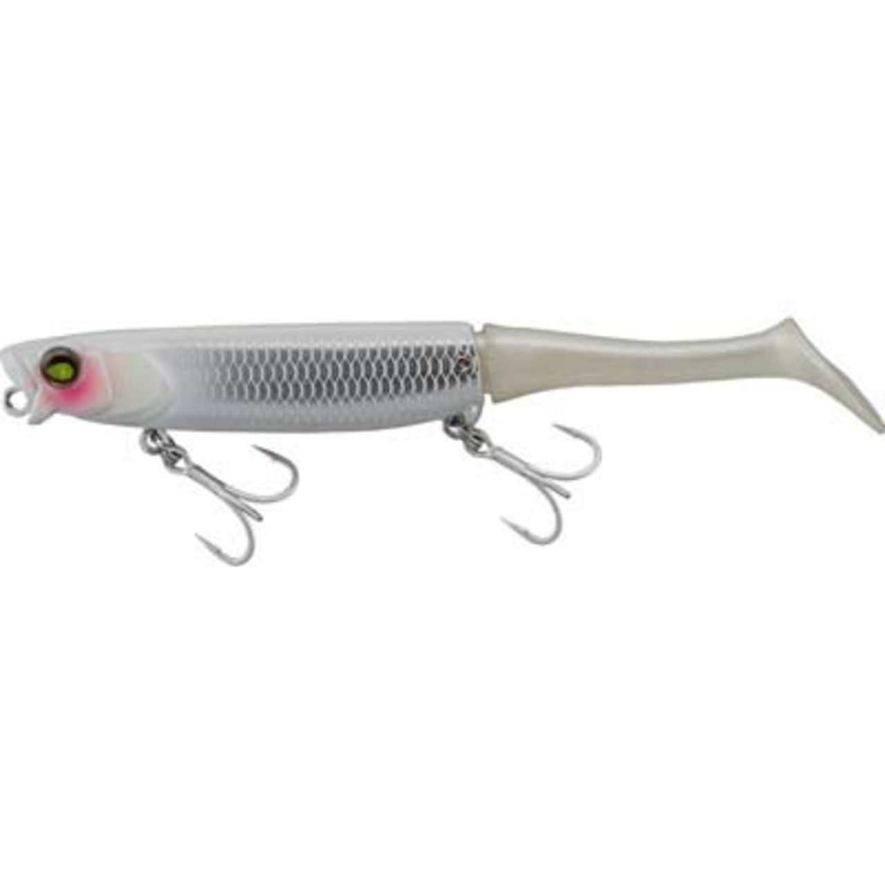 ボディはプラグ、テールはソフト素材のハイブリッドルアー。従来の、ヘッドが金属製のものでは底を引き摺ってしまうような状況でも、しっかりと浮き上がり、スローに誘うことが可能です。また、ボリュームのあるボディと柔らかい波動を発するテールの融合により、アピールと喰わせを両立します。