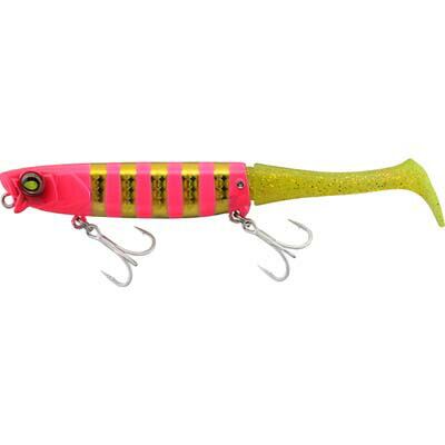 ボディはプラグ、テールはソフト素材のハイブリッドルアー。従来の、ヘッドが金属製のものでは底を引き摺ってしまうような状況でも、しっかりと浮き上がり、スローに誘うことが可能です。また、ボリュームのあるボディと柔らかい波動を発するテールの融合により、アピールと喰わせを両立します。