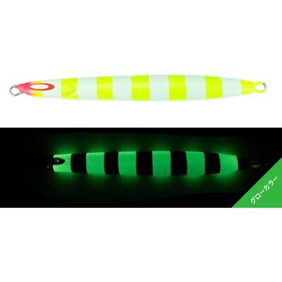 ■膨張色であるチャートと自ら発光してアピールするグローを組み合わせた超視認性カラー。光量の乏しい朝マズメの時間帯に最適で、高活性な魚に効率的にアピールしバイトを誘います。