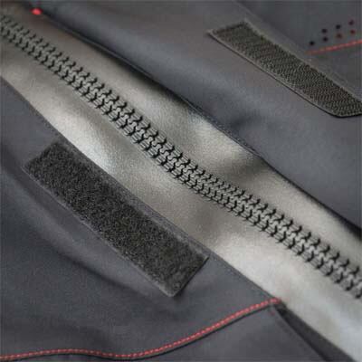 立体裁断に加え、ウェアが身体の動きに合わせて追従するHMSパターンを採用。ファスナーにはTIZIP社製マスターシールを使用し、従来のドライスーツよりも着脱が容易です。スライダーは塩水による錆びに強く、且つ皮膚の炎症を起こしにくい合金を使用しています。