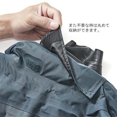 しなやかで汚れに強く耐久性の高い生地を採用。下半身は4層の透湿防水生地に加え、コーデュラ500D2重補強を行い更に強度を上げました。悪天候時に強い雨風をしのぐ為のフード付き。不要な時は丸めて収納。