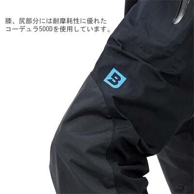 ダブルウエストで足首はソックス仕様。膝、尻部分には耐摩耗性に優れたコーデュラ500Dを使用しています。