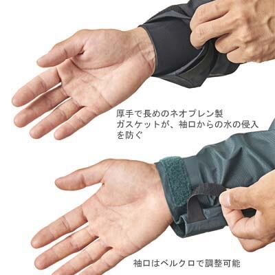 厚手で長めのネオプレン製ガスケットは、袖口からの水の侵入を防ぎこれまでのレインジャケットにはない快適性をもたらします。