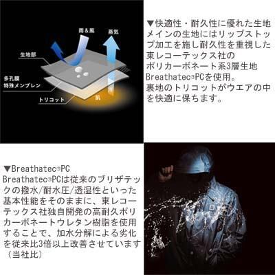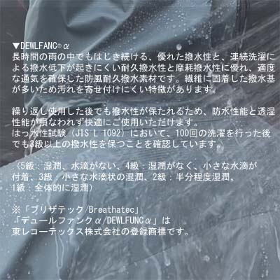 ショート丈のレインウエア。メインの生地にはリップストップ加工を施し耐久性を重視したポリカーボネート系3層生地BreathatecPCを使用。裏地のトリコットがウエアの中を快適に保ちます。
