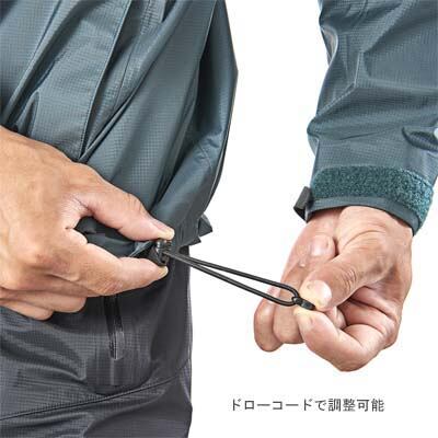 生地全体に適度なハリがあり、エクストリームなシーンでの使用に最適。4D裁断によるHMSパターンが、従来のレインウエアのストレスを解消。