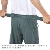 タイトなシルエットですが生地の伸縮性が高いため、ツッパリの少ない着用感です。股下は膝にかかりにくいショート丈に設定し、屈伸時のストレスを解消しました。