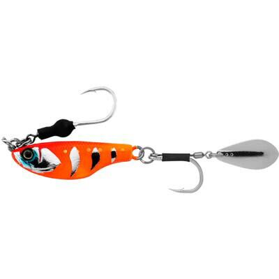 前方腹側に重心を持たせたボディ形状は、スイミング姿勢を安定させ、抜群の飛距離と直進性能を発揮。小型ブレードは空気抵抗が少ないため、通常のジグに引けを取らない射程範囲を誇る。