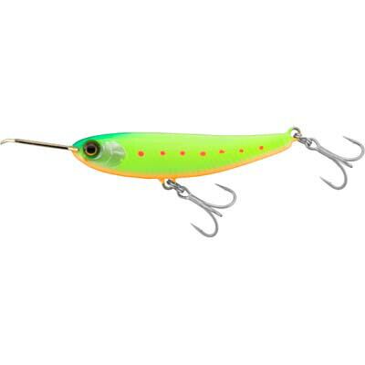 ミノーのような潜らせるためのリップではなく、飛距離を出すための重たいボディを水面へ急浮上させるのが“ライザーリップ”。遠投した先でもすぐに水面に浮上し、ただ巻きだけで、小魚が表層を逃げ惑う様なアクションを演出できます。