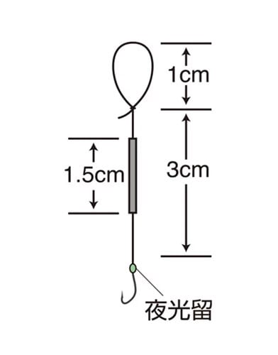 ワカサギ用オモリ下ハリス鈎でチチワ付。