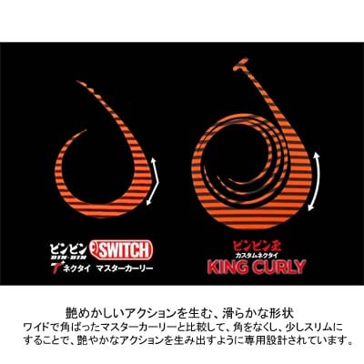 さらに先端の3本の細いカーリーはボリュームを保ちながらもナチュラルにアクションすることで、繊細な波動を引き起こし寄ってきた鯛をバイトに持ち込むことが可能です。