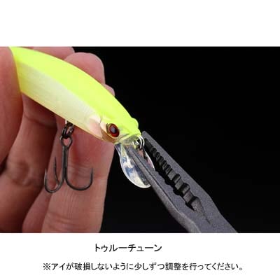 最大潜行深度を1mに設定しており、水深の浅いエリアでフィーディングをしている魚にアグレッシブにアプローチが可能。得意なアクションはただ巻きを中心とし、要所ではトゥイッチを入れる事で魚に捕食スイッチを入れる事が可能。