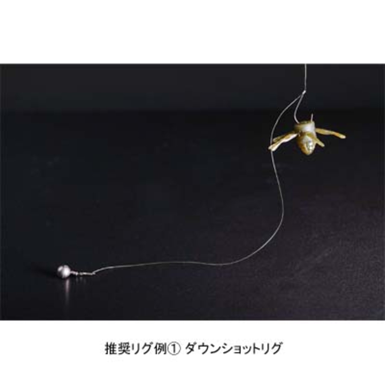 素早く逃がすアクションを加えた際にフロントカップが大きく水を動かします。また、フラットなレッグとの組み合わせで急激にブレーキがかかることでアクションが流れずに「ビタッ」と止まるアクションのメリハリがリアクションバイトを誘発する重要な要素です。