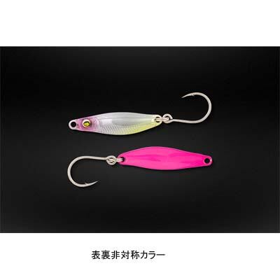 0.6mm厚のステンレス素材を採用した薄いボディは、薄いからこそ出せるキレのある高回転アクションとメッキ処理による激しいフラッシングを発生させ、プラスチックやソフト素材では出せない力強い誘いを可能にします。