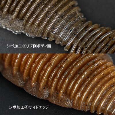 ボトム着底後、初動のずる引きでアクションが抜けてしまいボトムから浮いてしまう事を抑制します。ボトムに食いつくアクションと波動がバイトを誘発します。