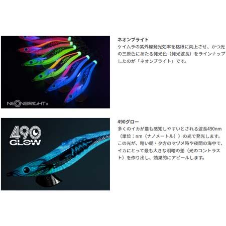 ローライト時に光のアピールを補助する490グローボディ。背のパープルと赤のフラットサイドがシルエット効果を生む、ナイト時のハイアピールカラー。