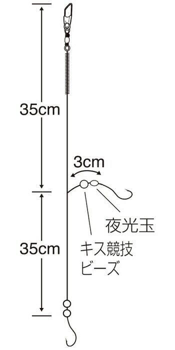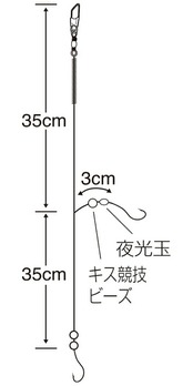 ・鈎、パーツ:アスリートキス(赤)6号、キス競技ビーズ、夜光玉