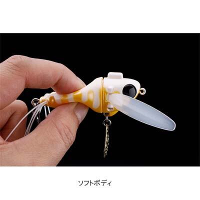リアボディには中空構造・ソフト素材を採用。ソフトでナチュラルな着水音で魚に違和感を与えません。また、ボディとフックの接触音を抑えることで余計なプレッシャーを軽減します。
