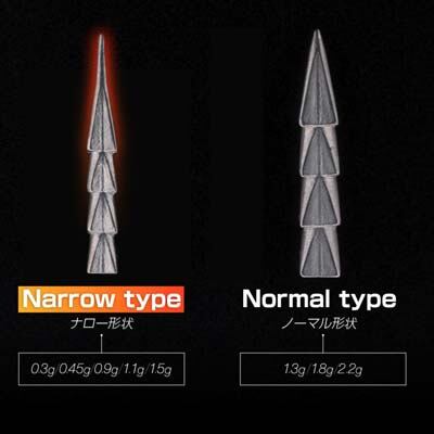 1.5gは細いワームへの使用を考慮し先端部を長くしたナロー形状を採用。