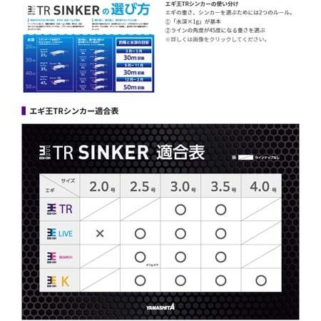 ●エギ王TRシンカー…重さや色を自由にローテーションすることで、より効果的にイカにアピールしアタリを誘発する。簡単に脱着が可能で、効率よくティップランを楽しむことが出来る。大量のエギを持ち込む必要がなく、タックルもコンパクトに。安定スイム形状にもこだわった。