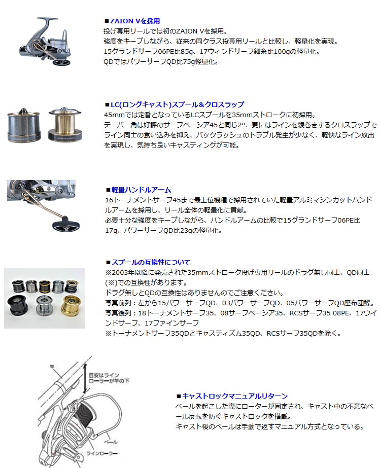 ZAION Vを採用したミドルクラス軽量投げ専用リール登場!ナイロン5号200mの巻糸量で置き竿でのカレイ・マダイ等、幅広く使用可能なクイックドラグ(QD)仕様。