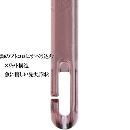 鈎のフトコロにすベり込む、スリット構造と魚に優しい先丸形状。
