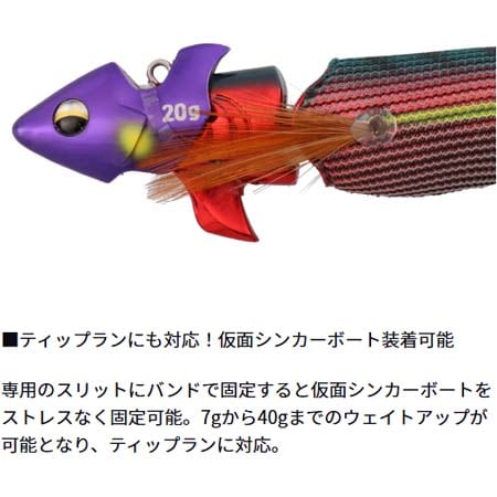 ■ティップランにも対応!仮面シンカーボート装着可能…専用のスリットにバンドで固定すると仮面シンカーボートをストレスなく固定可能。7gから40gまでのウェイトアップが可能となり、ティップランに対応。
