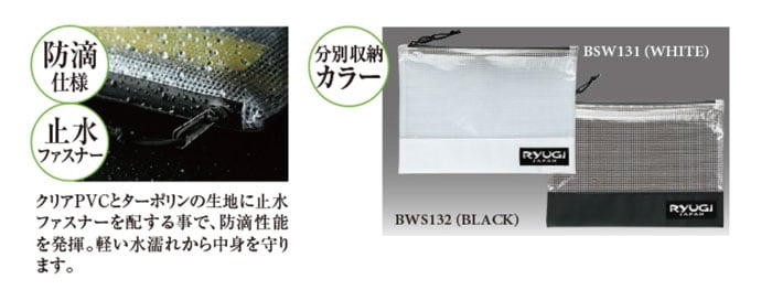 ファスナーには、止水ファスナーを採用する事で、防滴性能を持たせた。