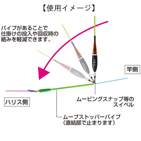 ウキクッションの役割があるムーブストッパーにパイプが合体したことで、カゴ釣り・棒ウキ・環付きウキを使用した釣りで仕掛けの絡み軽減に。