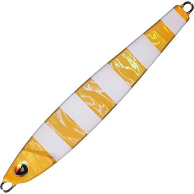 ワンピッチ・ハーフピッチショートジャークでテンポよく、広範囲に魚を探すのに有効なタイプ。フォールは、イレギュラーなスライドアクション。ジャークすると、移動距離の少ないキックバックアクションと、平面形状のデザインがフラッシングの強さでタチウオに猛アピールします。左右対称タイプなので、時折見せるイレギュラーアクションが、タチウオの捕食スイッチをONにさせます。