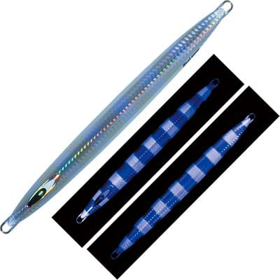 BlueLancer“ブルーランサー”ビンチョウマグロをジギングで狙う、トンボジギング専用設計で船を流して行うドテラ釣法に完全対応したメタルジグです。トンジギに求められる「抜けの良さ」「フォールスピード」を両立。ジャークアクションは首振りスライドアクション、フォールでは垂直スピードフォールとスライドフォールがラインの角度で変化します。