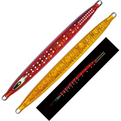 BlueLancer“ブルーランサー”ビンチョウマグロをジギングで狙う、トンボジギング専用設計で船を流して行うドテラ釣法に完全対応したメタルジグです。トンジギに求められる「抜けの良さ」「フォールスピード」を両立。ジャークアクションは首振りスライドアクション、フォールでは垂直スピードフォールとスライドフォールがラインの角度で変化します。