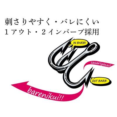 Gamakatsu×Ja-doコラボトレブルフック!「刺さりやすくバレにくい!」をコンセプトに開発されたのが『邪道エクレールフック』。トレブルS P-MHをベースに3本のうち1本をアウトバーブ化。アウトバーブを下向きに装着することで、「アウトバーブとインバーブが同時に掛かっている場合」にバーブ同士が引き合ってバレにくい構造になっています。特にミノーにおすすめで、サポートフックとしても優秀なフックです。