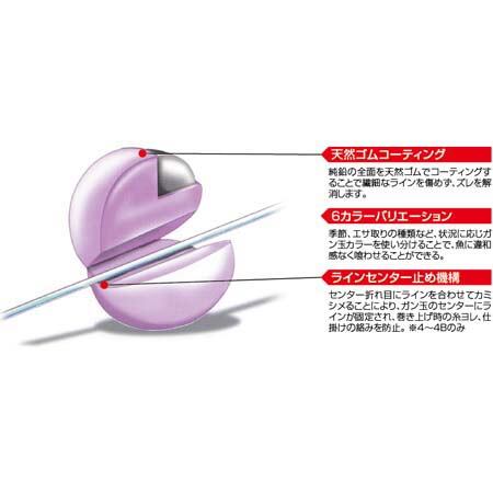 センター折れ目にラインを合わせてカミシメることにより、ガン玉のセンターにラインが固定され、巻き上げ時の糸ヨレ、仕掛けの絡みを防止。
