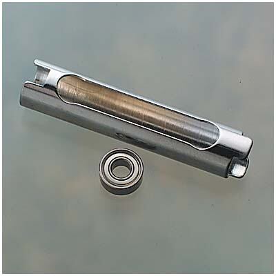 ABUリールが、もっと「飛ぶように」したい方の為のチューニングパーツ。レベルラインの軸受けにベアリング付け、回転を上げるアイテム。キャスト時の駆動抵抗を軽減し、飛距離アップに貢献する。