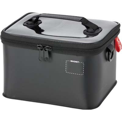 ワームパッケージやルアーケース収納に便利なタックルバッグ。バケットマウスに2個ピッタリ収納できるシステム設計。フックを一時保管できるマグネットを本体側面に装備し、上蓋の裏には便利なメッシュポケットも搭載するなど、多機能バッグに仕上げました。