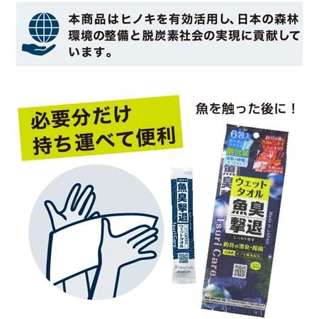 魚臭もスッキリ!個包装のヒノキ精油配合、ウエットタオル!