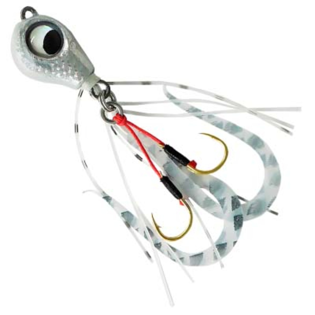 ■吸い込みバイト時にフックが追従して口に入るようアシストラインは極柔マテリアルを採用。全方位からのバイトにも対応できるようフックは段差セッティング仕様でフッキング率も大幅にアップ!